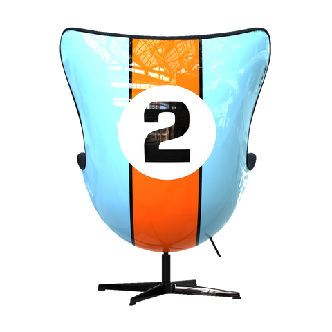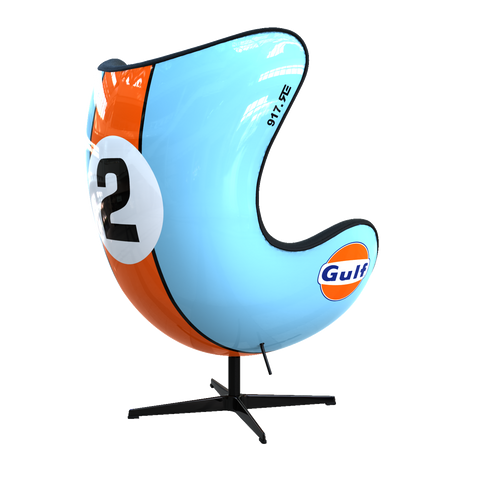Official Lisence GULF - Art Curve Chair 917K Gulf inspired by the Porsche 917K Winner of the 24 Hours of Daytona in 1970. Driven to victory by Pedro Rodriguez, Leo Kinnunen and Brian Redman, it broke the distance record by 190 miles in its quintessential Gulf livery. The ultimate official Gulf product.